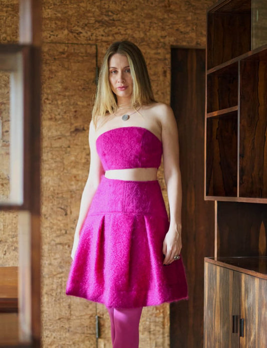 Camisa em Georgette de Seda Paisley - Magenta e Laranja