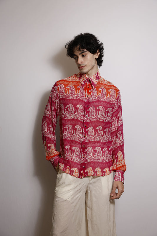 Camisa em Georgette de Seda Paisley - Magenta e Laranja